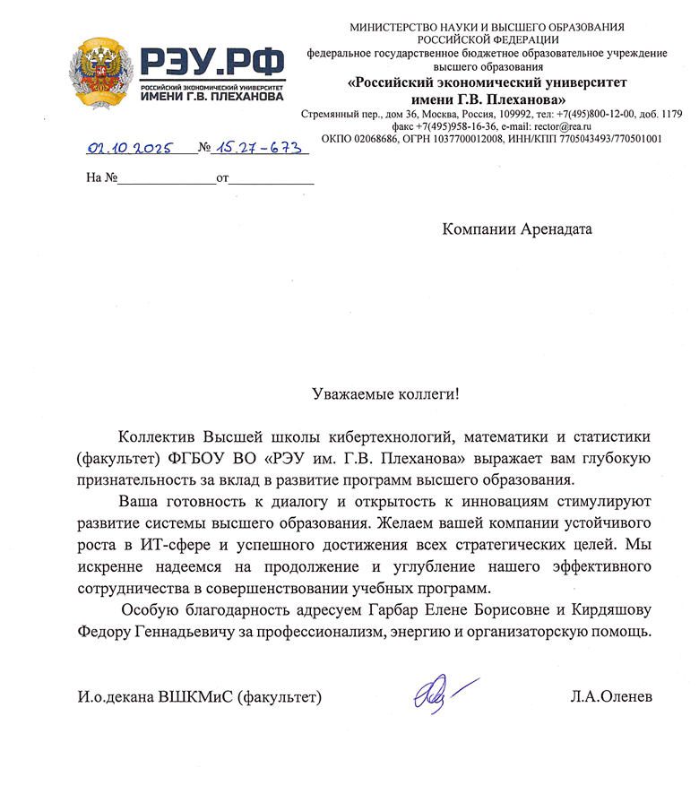 «День индустриального партнёра — это мост между теорией и практикой. Именно такие форматы взаимодействия помогают укреплять связи университета и индустрии: они дают студентам возможность услышать из первых уст требования реального сектора и понять, какие компетенции востребованы сегодня. Живой диалог с практиками, обзор современных российских ИТ-решений ускоряют профессиональное становление молодых специалистов и помогают им уверенно делать первые шаги в карьере. Мы благодарим наших партнёров из Группы Arenadata и надеемся, что в долгосрочной перспективе регулярные встречи университета и бизнеса будут формировать прочный кадровый резерв, способный оперативно отвечать на вызовы цифровой трансформации».